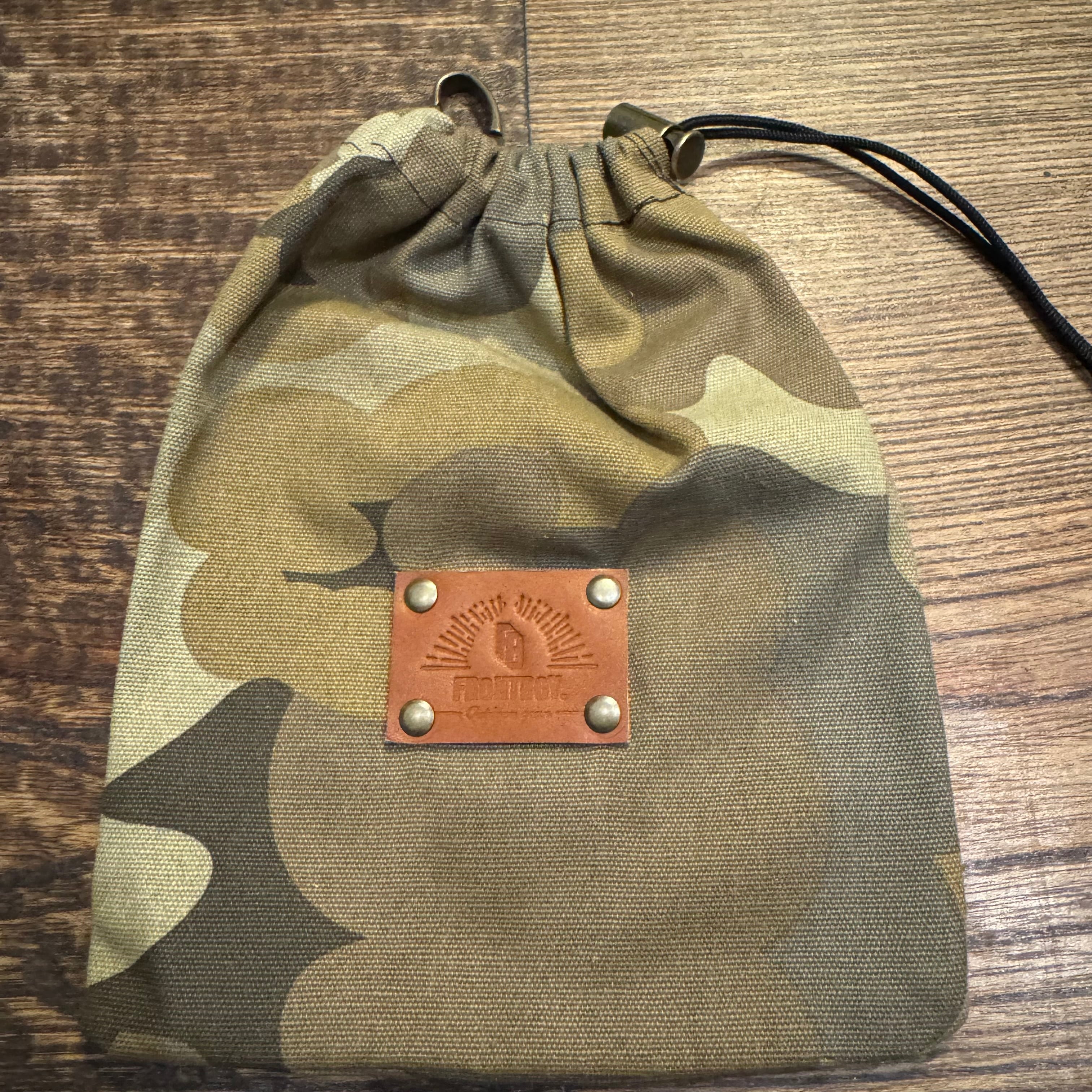 アメリカ軍のレオパルドパターン迷彩生地(レプリカ)を使用したFRoNTBoYオリジナルの巾着袋です