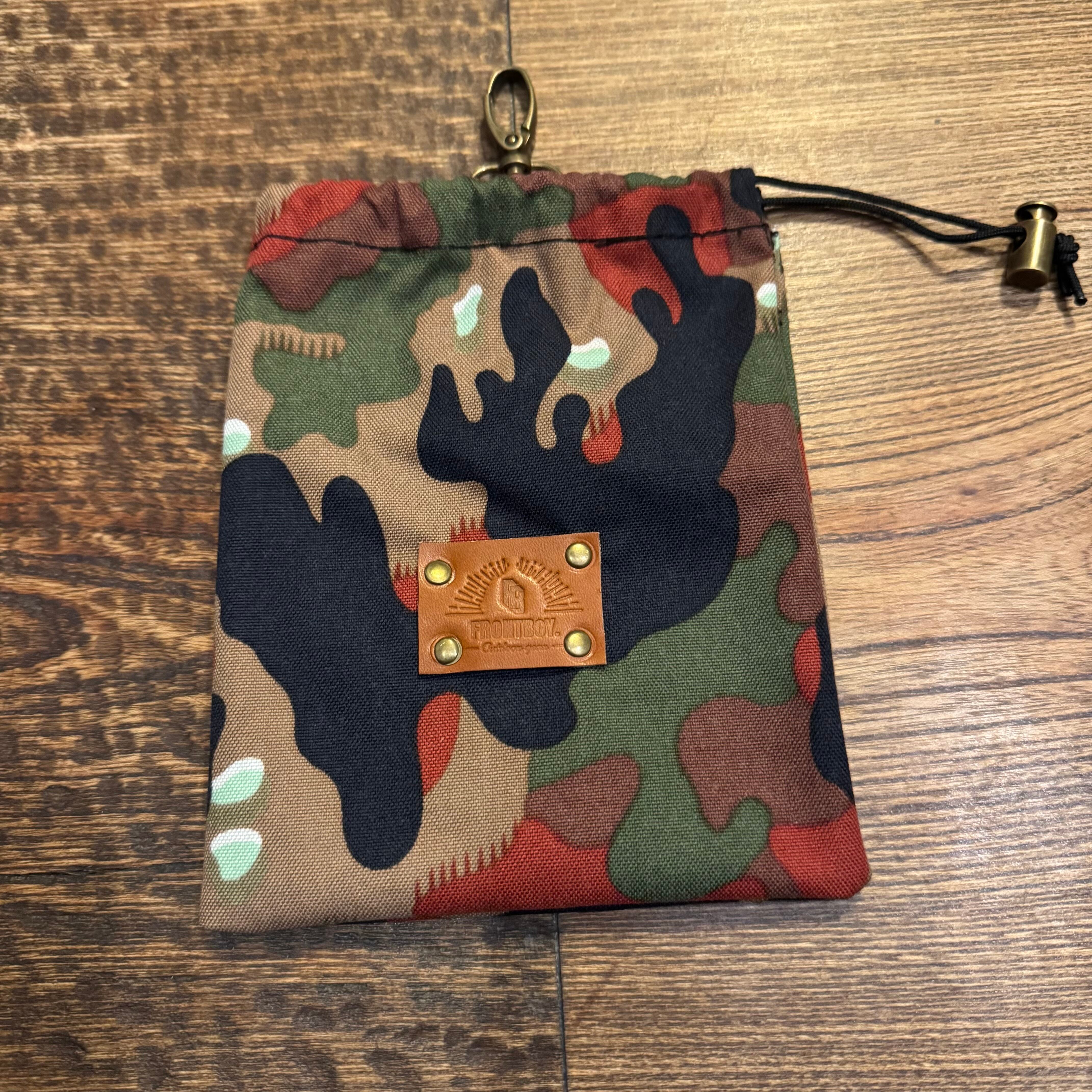 スイス軍のアルペン迷彩生地を使用したFRoNTBoYオリジナルの巾着袋です