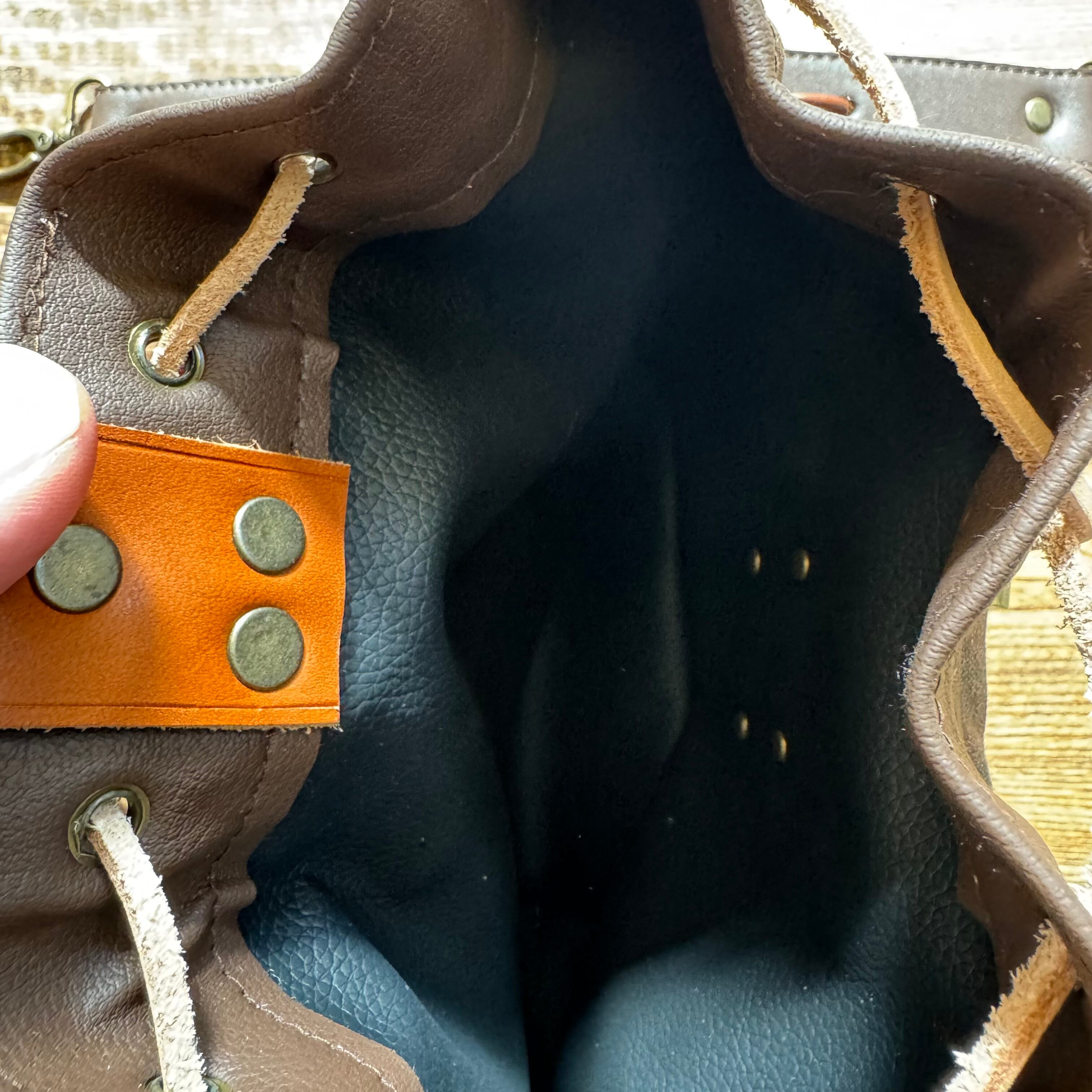 こちらは丸カラビナをサイドに取り付けて、ハンドバッグとしても使える用にカスタムしてあります。