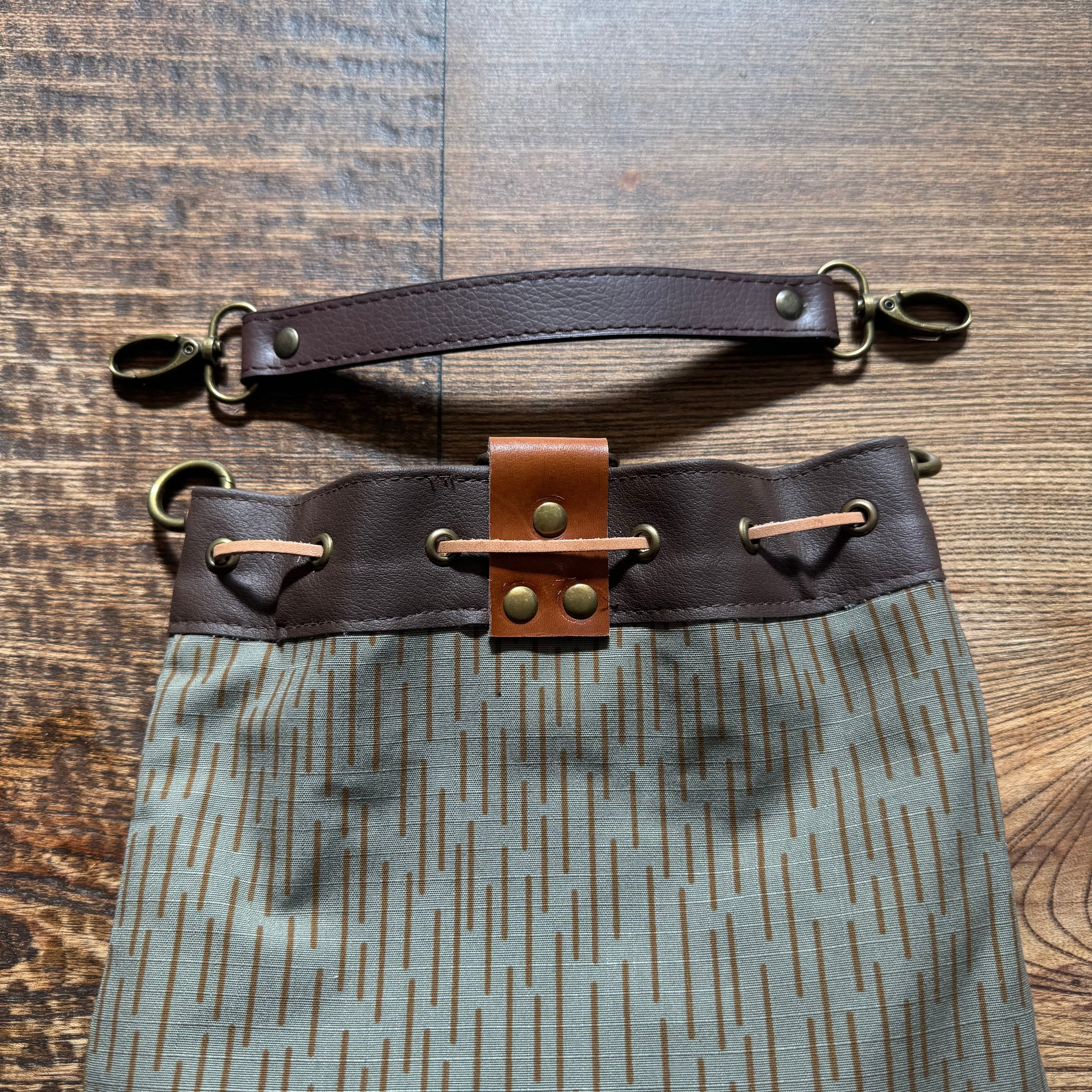 こちらは丸カラビナをサイドに取り付けて、ハンドバッグとしても使える用にカスタムしてあります。