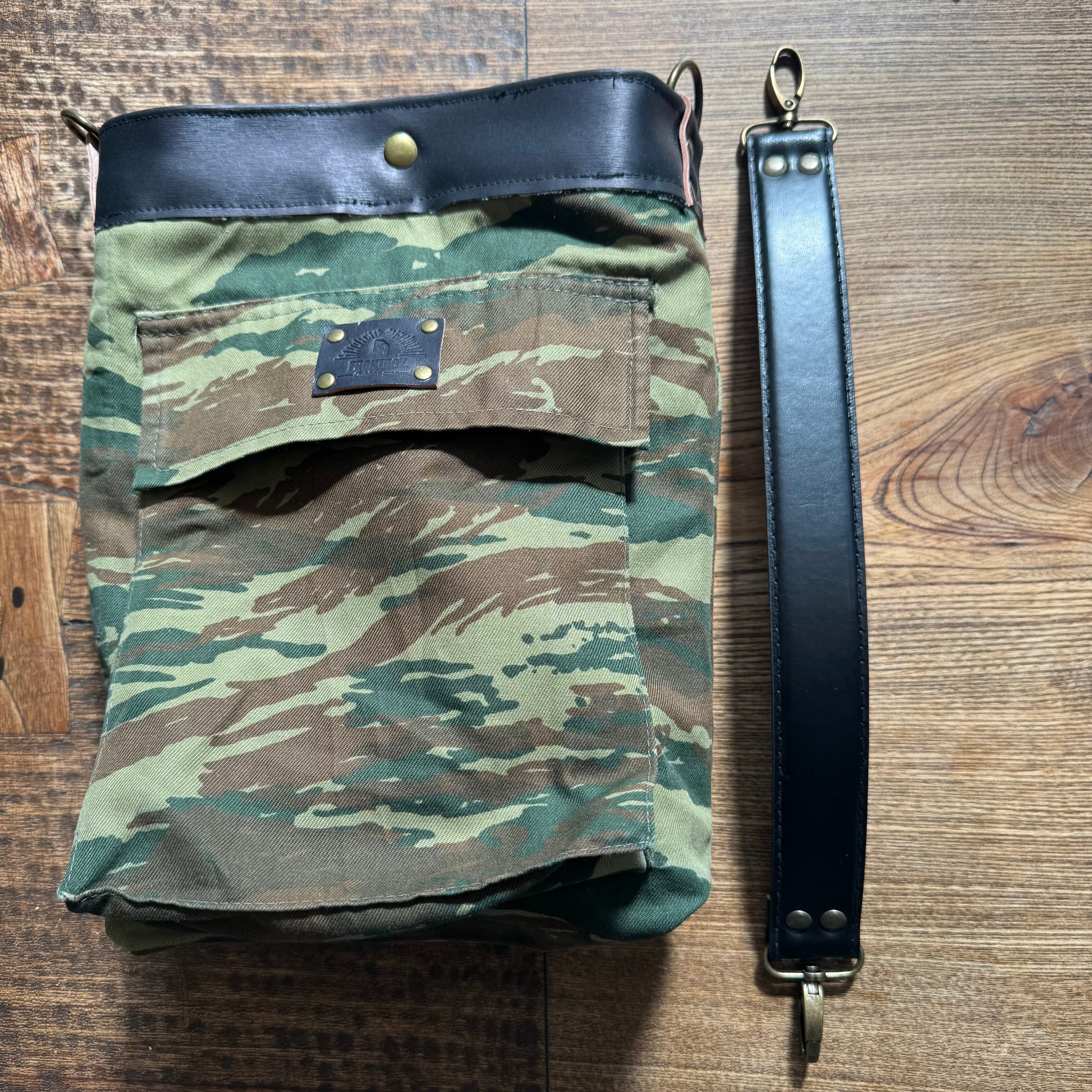 ギリシャ軍のリザード迷彩生地を使用したFRoNTBoY.オリジナルハンドバッグです