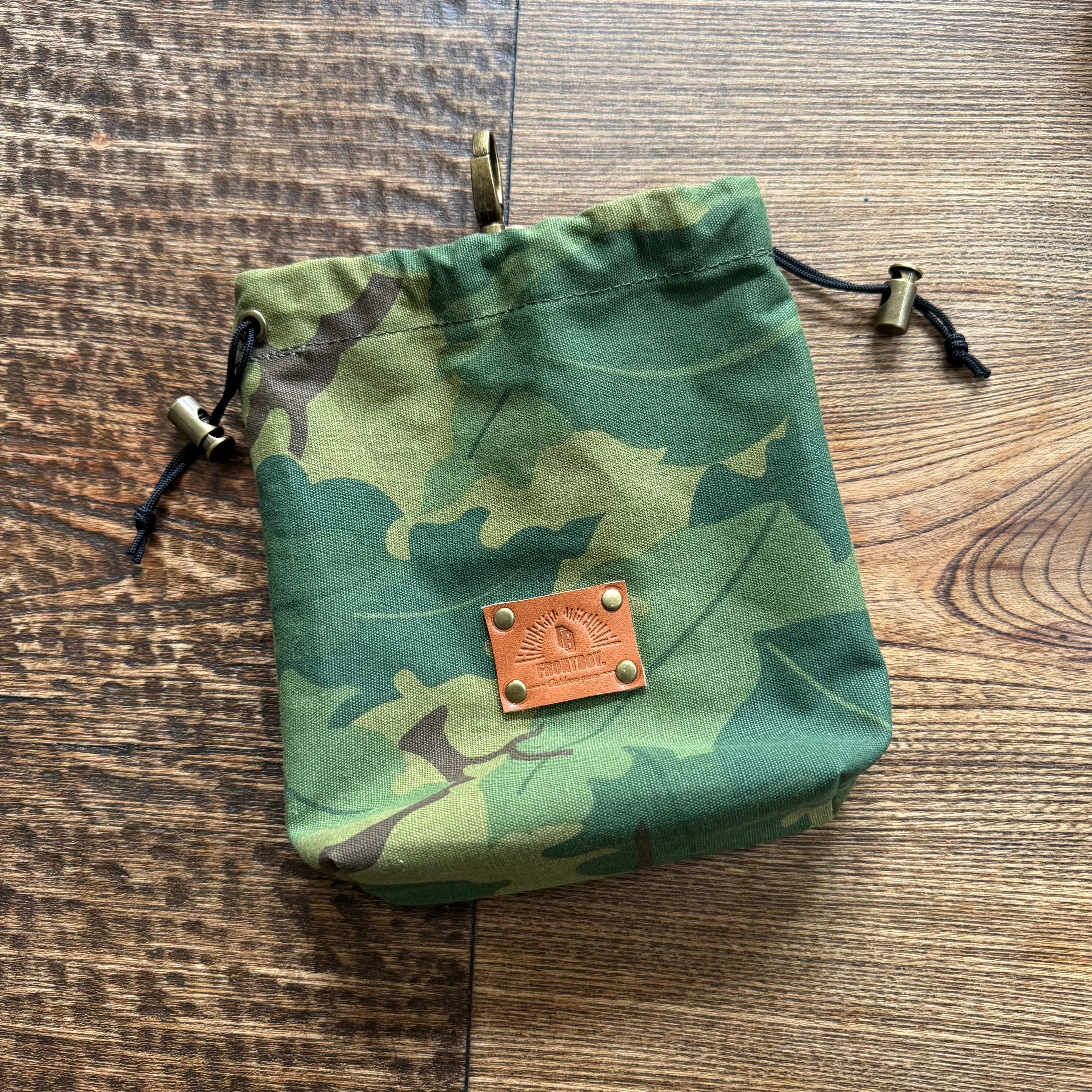 アメリカ軍のミッチェルパターン迷彩生地(レプリカ)を使用したFRoNTBoYオリジナルの巾着袋です。