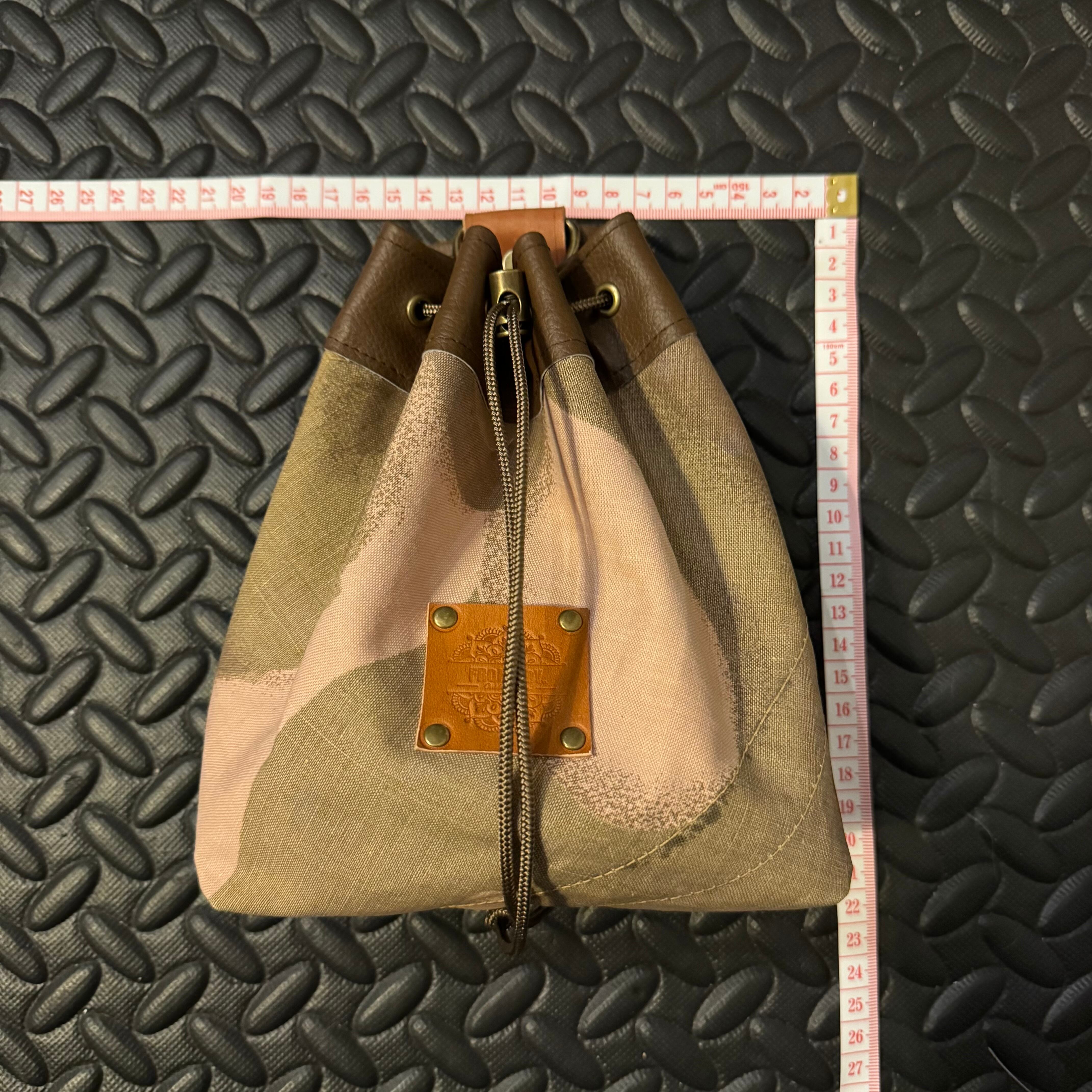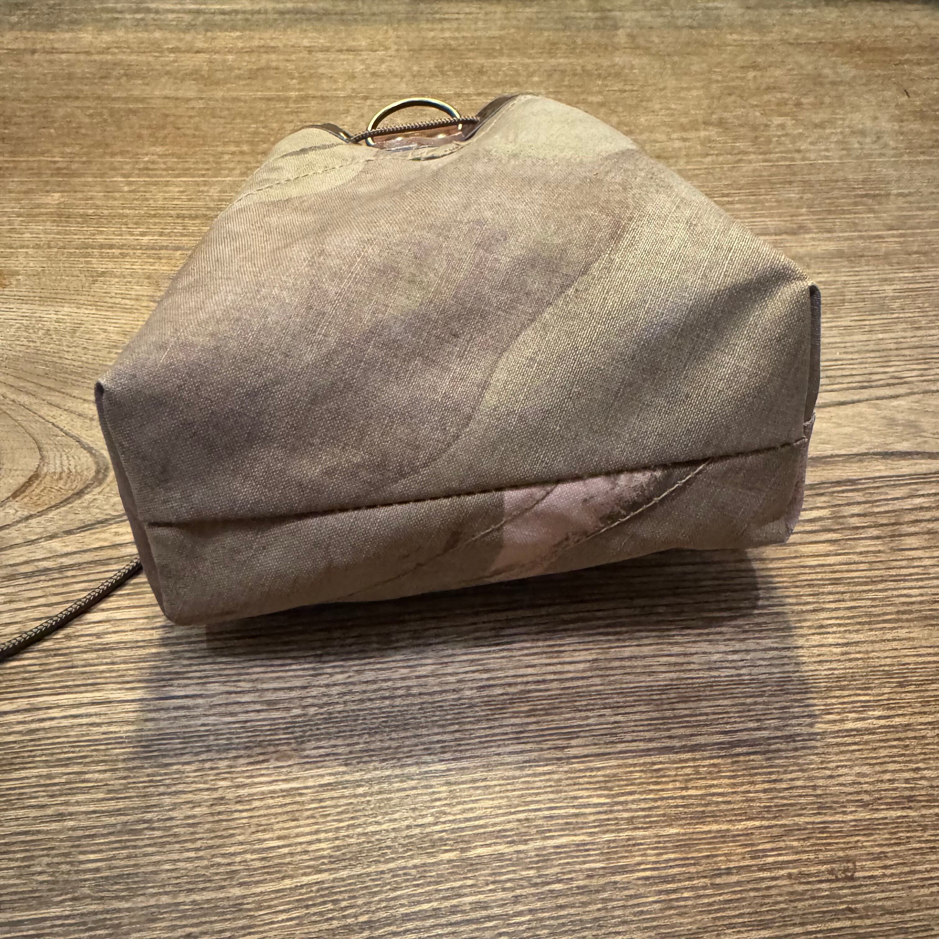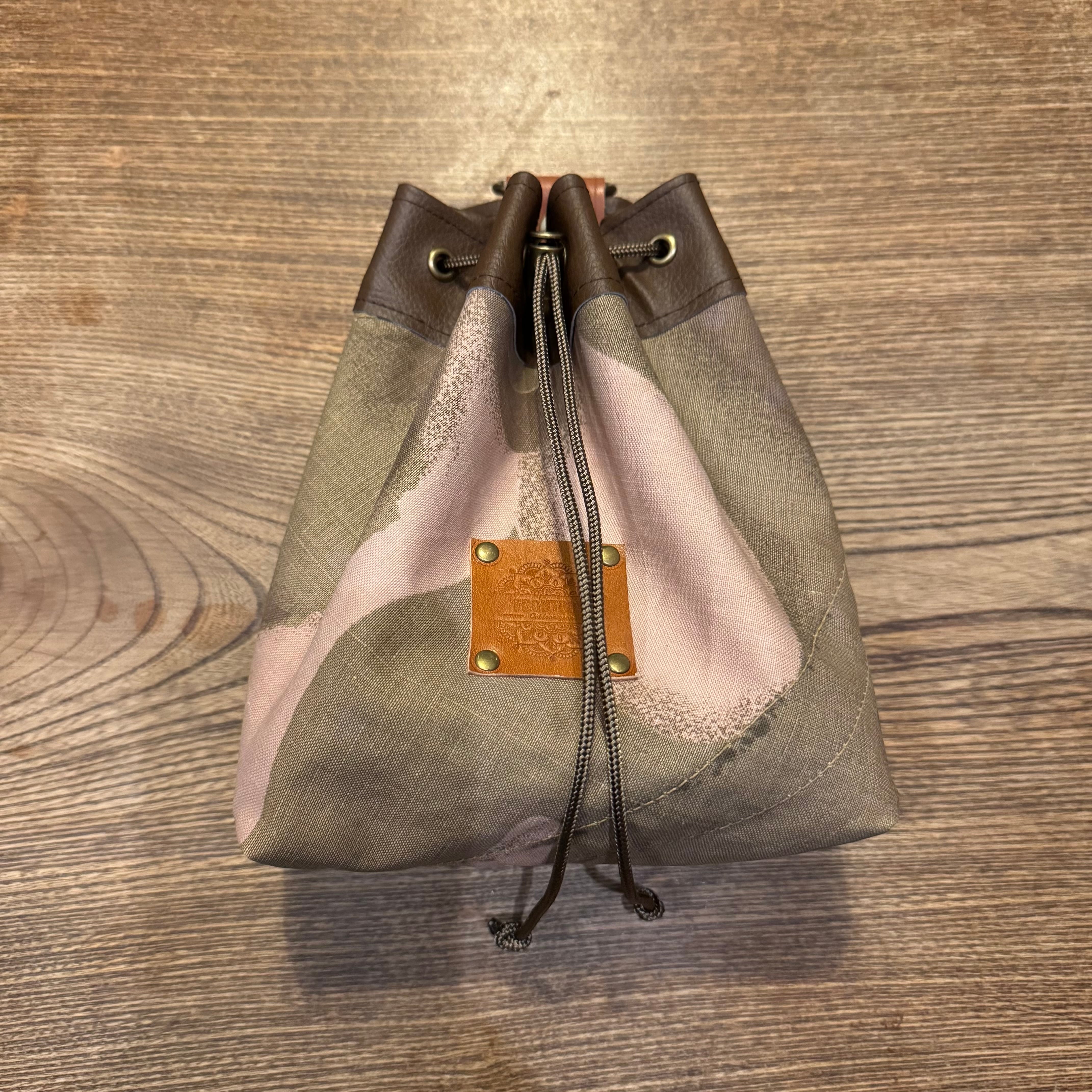 こちらは約Mサイズの巾着ポーチになります。お持ちのザックのサブポーチや、別売りのショルダーベルトをつけてサコッシュとしておすすめの商品です。