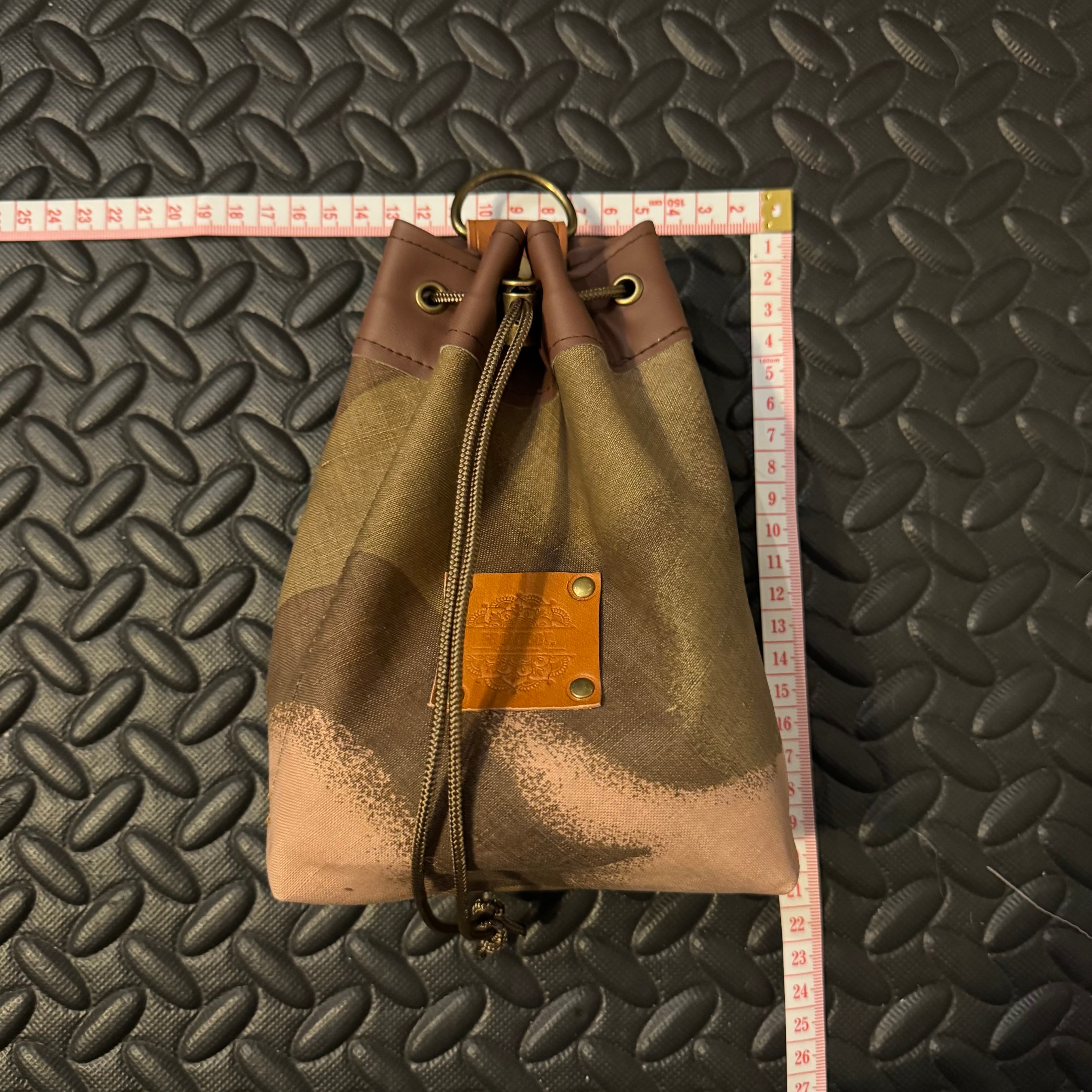 こちらは約Mサイズの巾着ポーチになります。お持ちのザックのサブポーチや、別売りのショルダーベルトをつけてサコッシュとしておすすめの商品です。