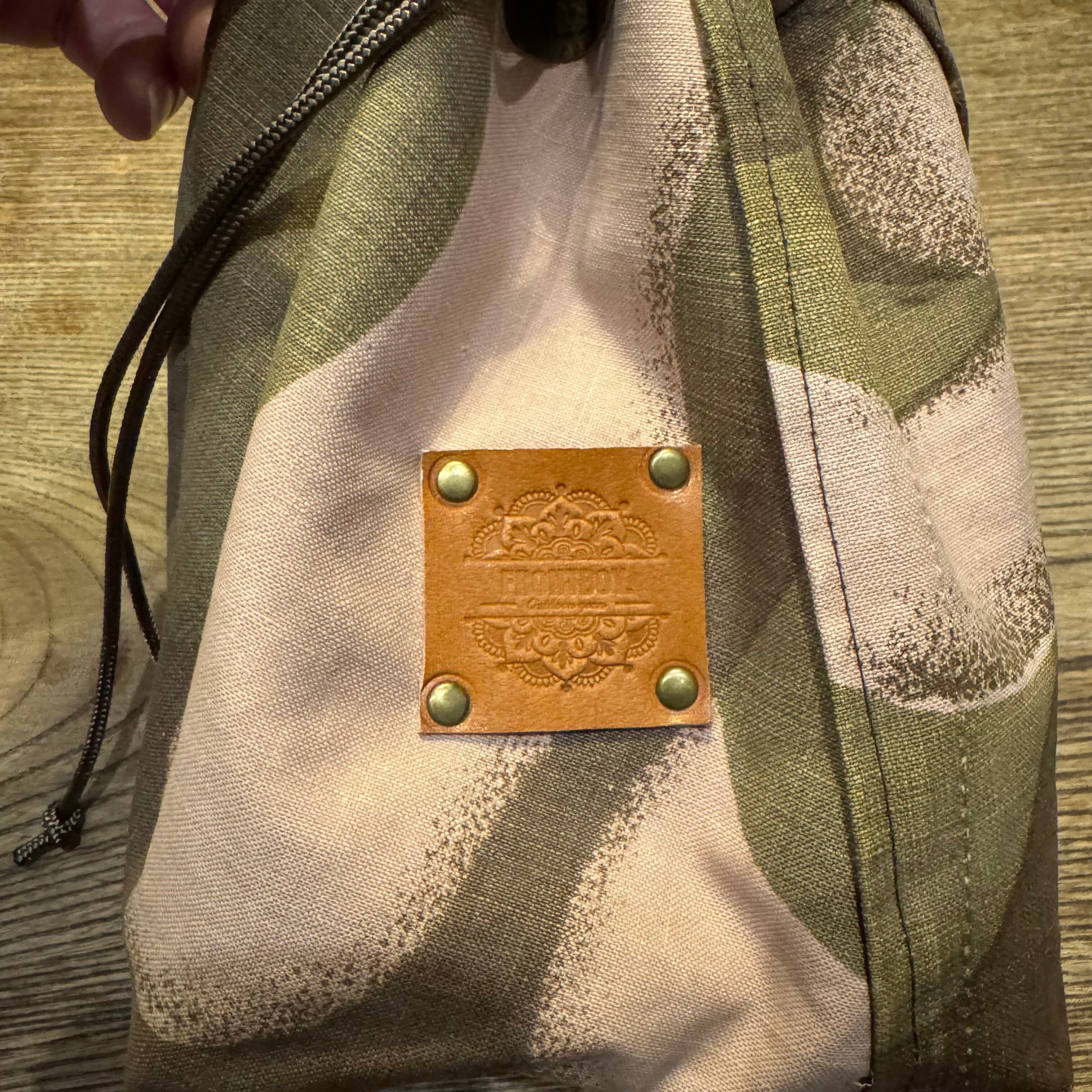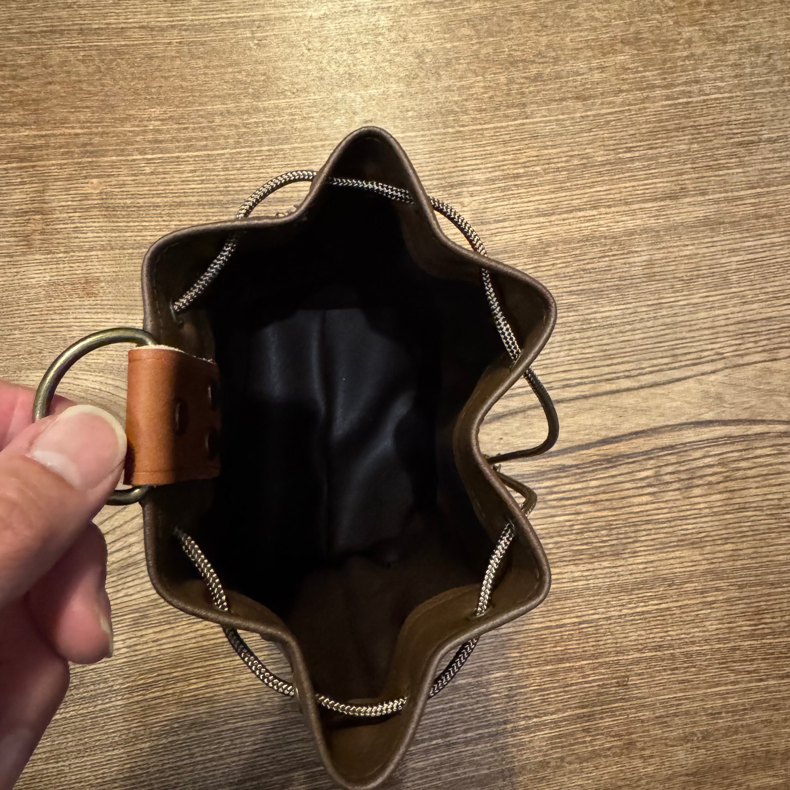 こちらは約Lサイズの巾着ポーチになります。お持ちのザックのサブポーチや、別売りのショルダーベルトをつけてサコッシュとしておすすめの商品です。